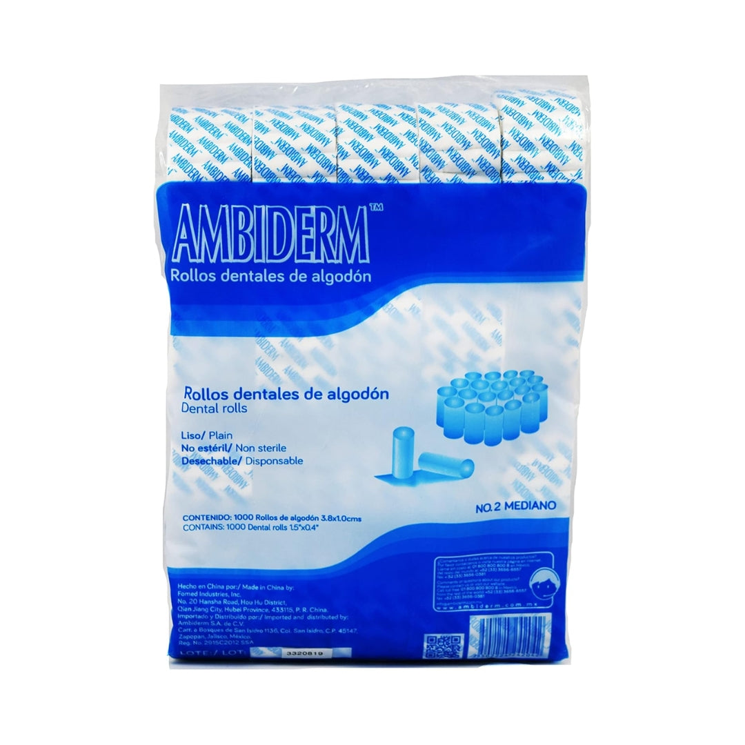 Los rollos de algodón AMBIDERM para uso dental están hechos de algodón 100% natural, libres de almidones y sin aglutinantes, evitando irritaciones en las mucosas. Las fibras del rollo de algodón son mas pequeñas, lo que permite mayor absorción durante el lapso de trabajo.